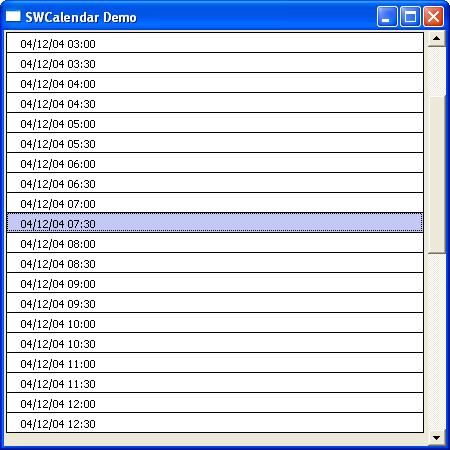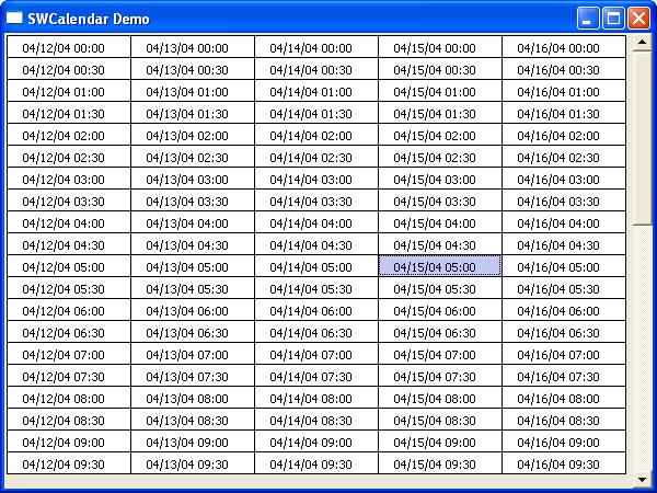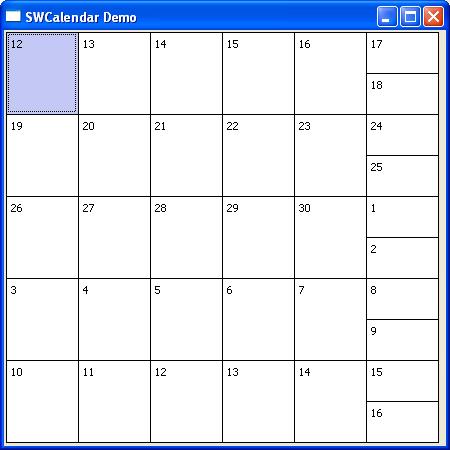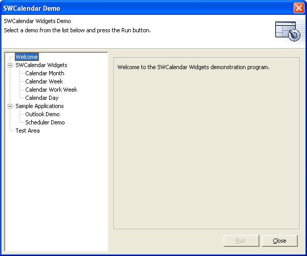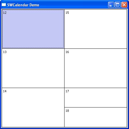 SWCalendar is a widget using the SWT toolkit.It is designed to assist a developer that is creating an application which requires the use of calendars and schedulers. The current implementation contains four base widgets which the developer can build upon. The four widgets can be seen here. A demo application is provided to assist the developer in using the calendar widgets.